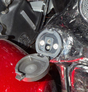 Charging port cover made of highly durable, break-resistant POM polymer.
